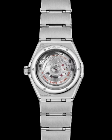 6 o'clock position. The hands, OMEGA logo, Constellation star and diamond holders