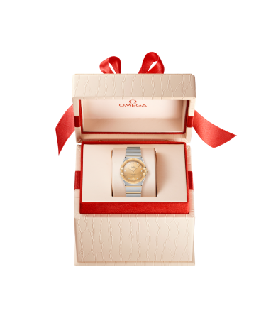and diamond holders are also in 18K yellow gold.At the heart of this timepiece is the OMEGA Calibre 4061, while the caseback