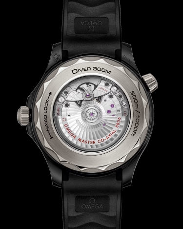 black ceramic [ZrO2] buckle, and is driven by the OMEGA Master Chronometer