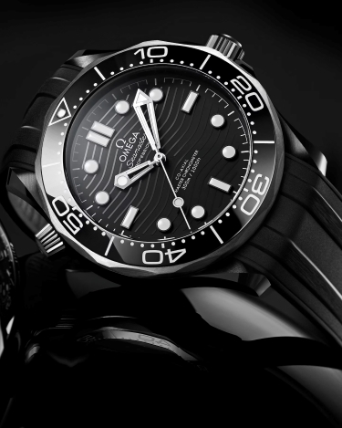 Seamaster Diver 300M43.5 mm, black ceramic on rubber strap